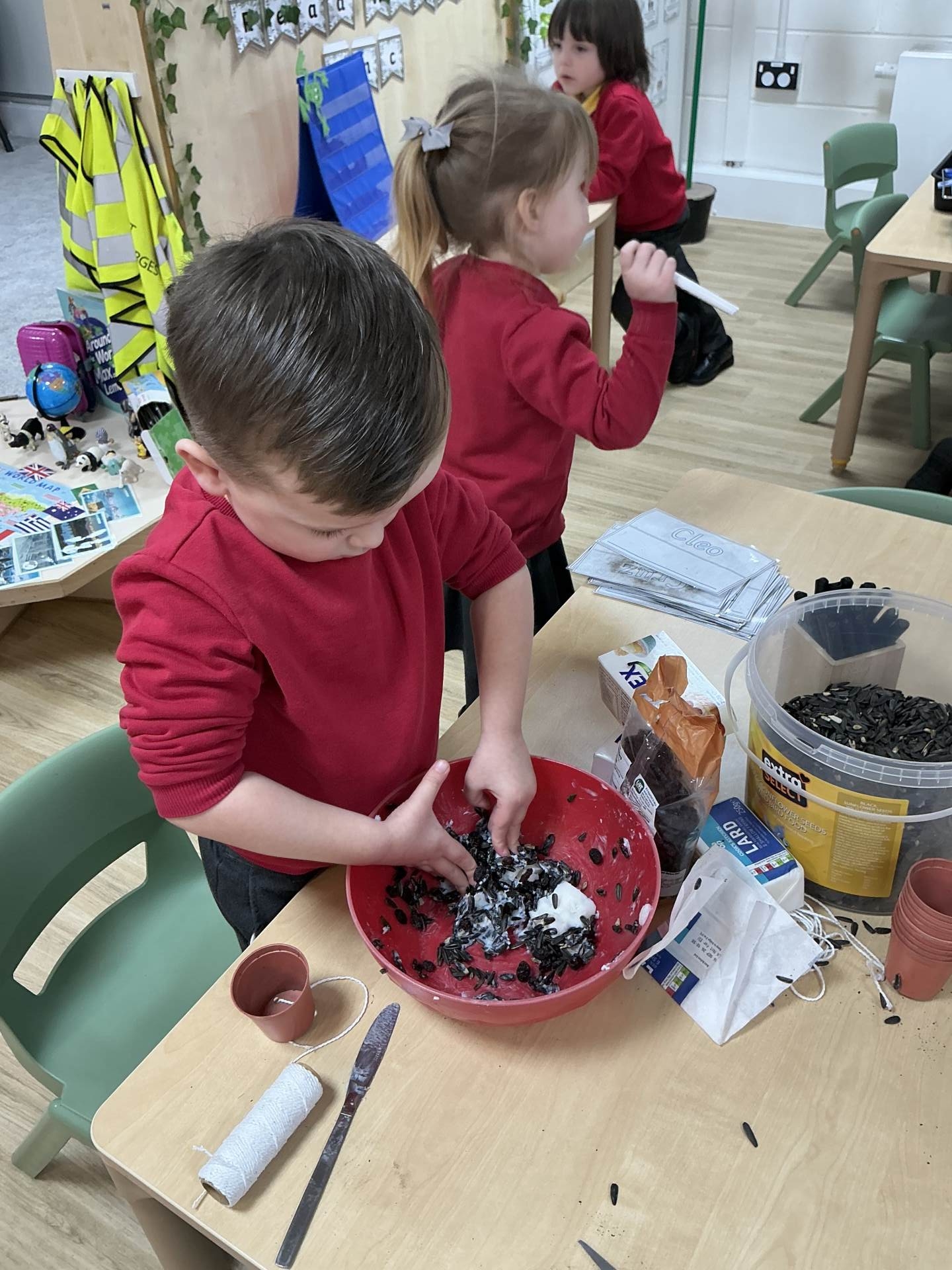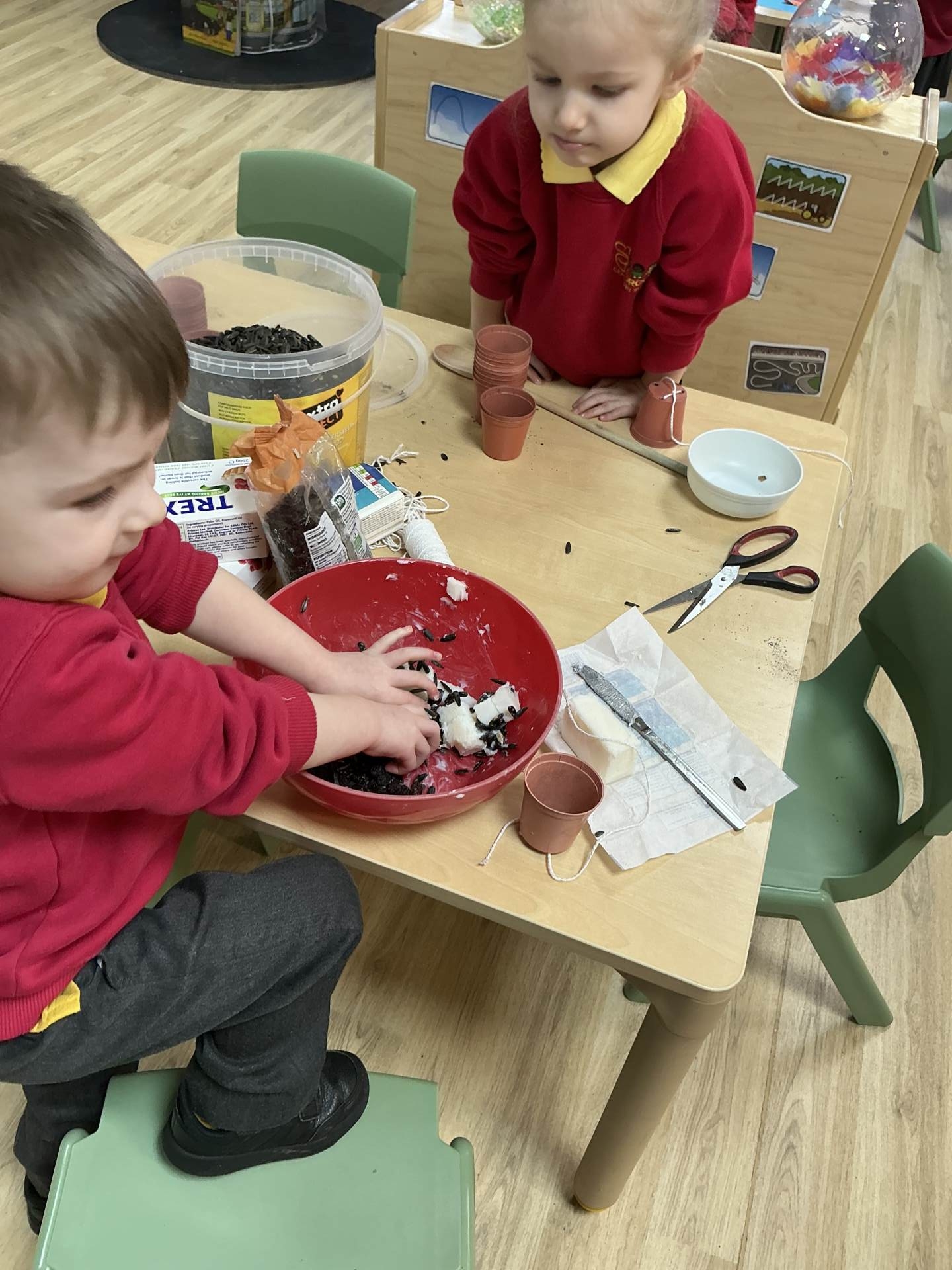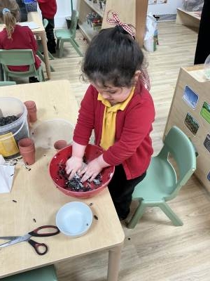 Poppy Class have focusing on taking care of their environment and alongside providing recycling bins for each class they have been planning ways to improve the FS playground and have decided to create an Eco garden. This is still in it’s infancy but a new compost bin has been purchased along with gardening tools. In the coming months the children will begin to plant and grow their own vegetables. As a start to the project of caring for our environment the children have been making bird feeders to encourage wildlife to the area and the children have been eagerly observing using their bird spotting charts.