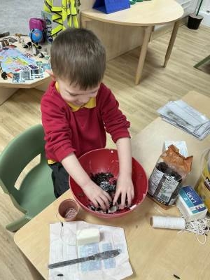 Poppy Class have focusing on taking care of their environment and alongside providing recycling bins for each class they have been planning ways to improve the FS playground and have decided to create an Eco garden. This is still in it’s infancy but a new compost bin has been purchased along with gardening tools. In the coming months the children will begin to plant and grow their own vegetables. As a start to the project of caring for our environment the children have been making bird feeders to encourage wildlife to the area and the children have been eagerly observing using their bird spotting charts.